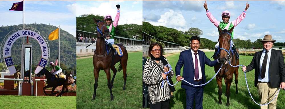 The curtain came down on the Mysore Monsoon Meeting 2025 in truly majestic fashion, with the season’s blue riband event — The Mysore Derby (Grade 1) — being annexed in emphatic style by the James Mckeown-trained MIRACLE STAR, brilliantly piloted by ace jockey Suraj Narredu.